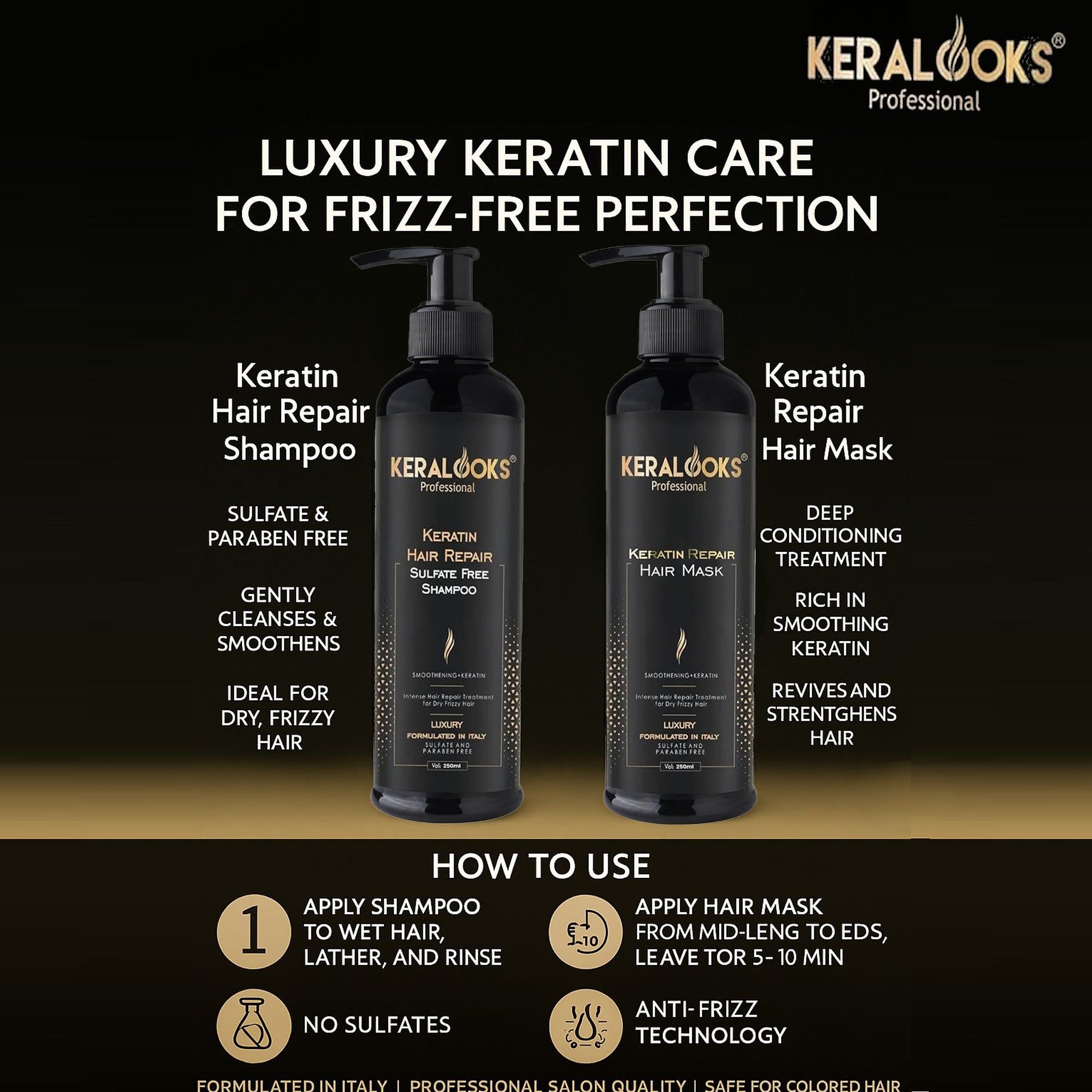 keratin shampoo & Hair mask combo (250ml each)- sulfate free |Repair | Shine | Frizz-control